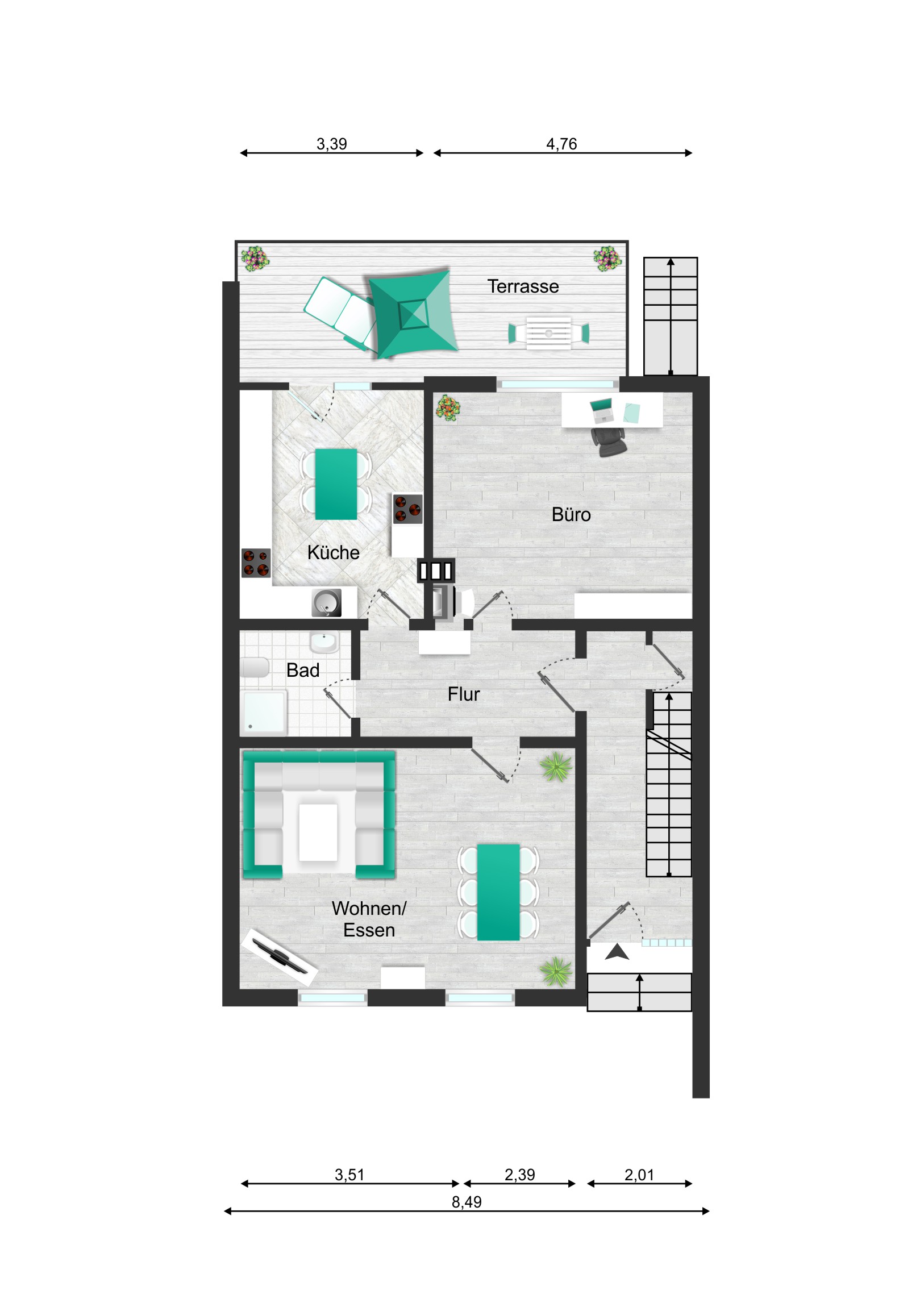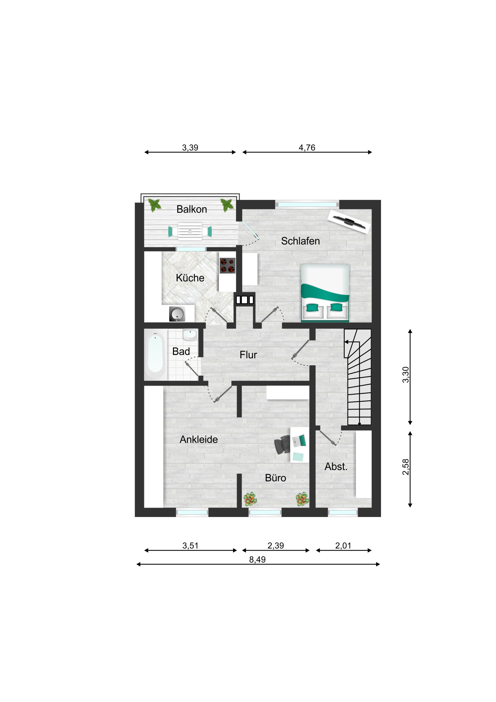 Der Stichweg ist nicht befahrbar, daher müssen sie keinen Fahrzeugverkehr vor der Haustüre fürchten. Kinder können bedenkenlos rauslaufen. Ihr neuer Garten ist nach Südwesten ausgerichtet, sodass Sie bis zum späten Abend hin dort Sonnen haben.